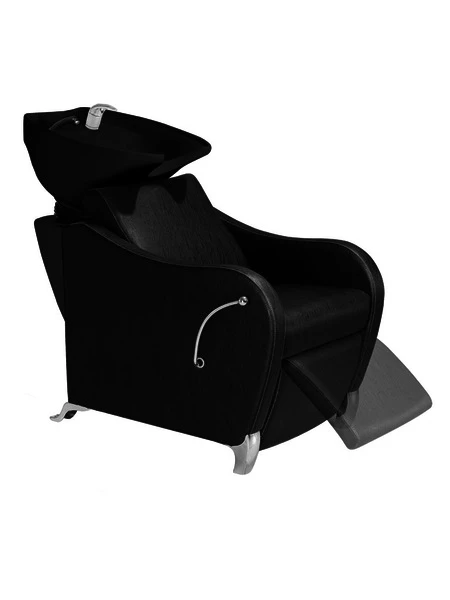 Bac à shampoing élégant et confortable avec structure bois et métal recouverte de fibre polyester noire. Garnissage mousse polyuréthane indéformable, densité 30Kg/m3. Repose-jambes mécanique manuel. Revêtement PVC. Cuve céramique blanche, montée sur mécanisme oscillant. Livré avec mitigeur à cartouche céramique et système d’écoulement complet.