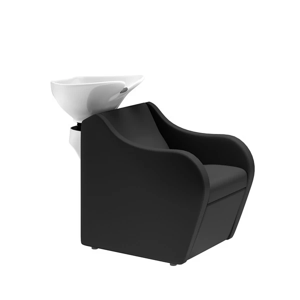 Bac à shampoing Logyks Faid skai noir, bac profond et ergonomique pivotable, siège et dossier grand confort, structure intérieure métallique.