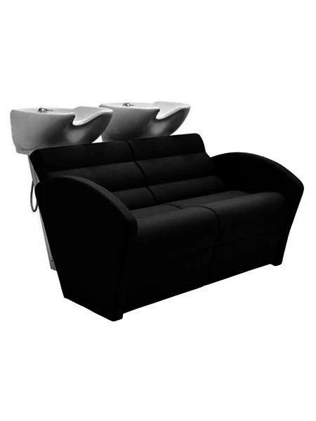 Bac à shampoing double élégant et confortable avec structure de protection en aluminium anodisé et structure intérieure en métal galvanisé. Cuve blanche basculante.
