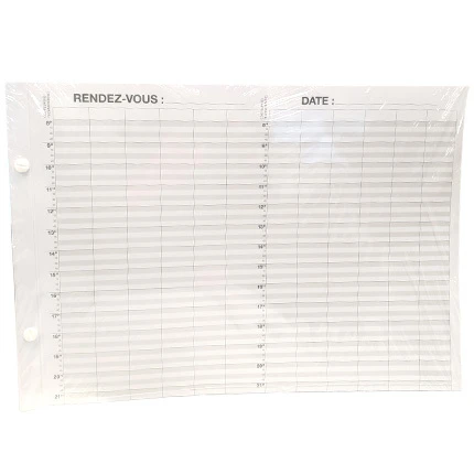 Magnifique carnet de rendez vous en grand format, proposant une amplitude horaire de 8h à 21h quart d’heure par quart d’heure.