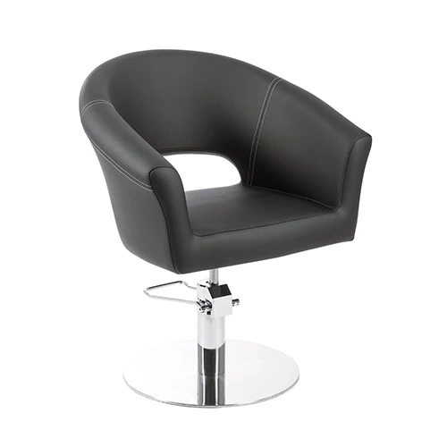 Fauteuil Logyks Arcel hydraulique pvc noir, détails de couture brodés en blanc, mousse haute densité, structure intérieure métallique, base ronde.