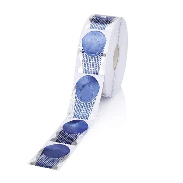 Rouleau de 500 formes éffilées bleues adhésives pré-découpées pour châblons. Ajoutez facilement du gel pour rallonger les ongles.