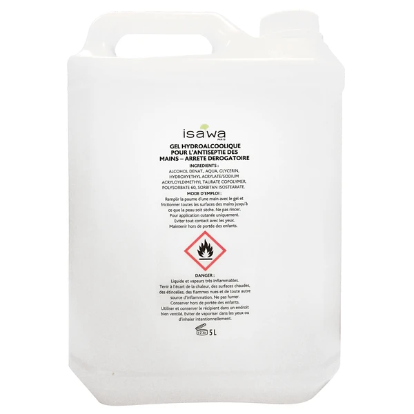 Gel hydroalcoolique Pour Antiseptie des Mains 5L, frictionner toute les surfaces des mains.