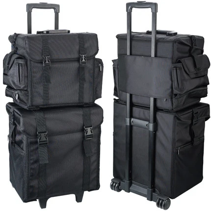 Valise à roulettes à 2 niveaux en toile polyester, facile à transporter pour les soins à domicile.