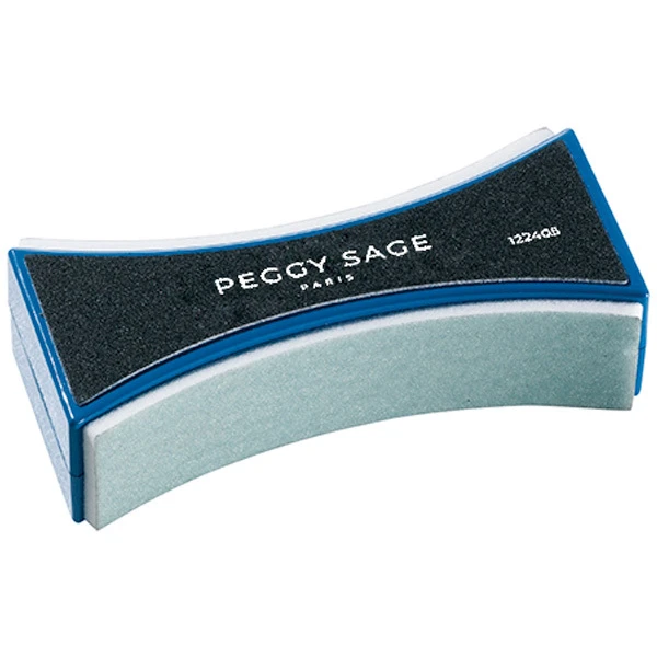 Polissoir pour ongles ergonomique Peggy Sage, côté noir pour façonner vos ongles, côté vert pour polir et côté blanc pour donner de la brillance