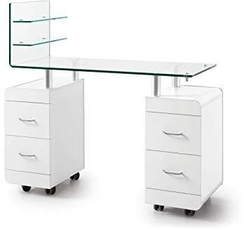 Luxueuse table de manucure à tablette cintrée en verre trempé.